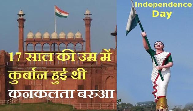 आज हमारा देश भारत 73वां स्वतंत्रता दिवस मना रहा है। भारत को आजादी दिलाने के लिए लाखों लोगों ने कुर्बानियां दी थी। इनमें कुछ लोगों को हम जानते हैं और उन्हें बड़ी ही शिद्दत से याद करते हैं। लेकिन इनमें कुछ ऐसे भी है जिन्हाेंने बहुत छोटी सी उम्र में अपनी जान को देश के लिए कुर्बान कर दिया। इस क्रम में सबसे पहला नाम भगत सिंह का आता है लेकिन आज हम आपको नार्थ ईस्ट की ऐसी वीरागंना के बारे में बताने जा रहे हैं जिन्होंने देश के लिए अपनी जान दे दी लेकिन तिरंगे को झुकने नहीं दिया। हम बात कर रहे हैं विरांगना कनकलता बरुआ की।बता दें कि कनकलता बरुआ का जन्म 22 दिसंबर, 1924 को असम के बांरगबाड़ी गांव में कृष्णकांत बरुआ के घर में हुआ था। कनकलता बचपन में ही अनाथ हो गई थी। कनकलता के पालन–पोषण का दायित्व उनकी नानी को संभालना पड़ा। इन सबके बावजूद कनकलता का झुकाव राष्ट्रीय स्वाधीनता आंदोलन की ओर होता गया। जब मई 1931 ई. में गमेरी गांव में रैयत सभा आयोजित की गई, उस समय कनकलता केवल सात वर्ष की थी। फिर भी सभा में अपने मामा देवेन्द्र नाथ और यदुराम बोस के साथ उसने भी भाग लिया। सभा के अध्यक्ष प्रसिद्ध नेता ज्योति प्रसाद अग्रवाला थे। ज्योति प्रसाद अग्रवाल असम के प्रसिद्ध कवि थे और उनके द्वारा असमिया भाषा में लिखे गीत घर–घर में लोकप्रिय थे। अग्रवाल के गीतों से कनकलता भी प्रभावित और प्रेरित हुई। इन गीतों के माध्यम से कनकलता के बाल–मन पर राष्ट्र–भक्ति का बीज अंकुरित हुआ।सन 1931 के रैयत अधिवेशन में भाग लेने वालों को राष्ट्रद्रोह के आरोप में बंदी बना लिया गया। इसी घटना के कारण असम में क्रांति की आग चारों ओर फैल गई। मुम्बई के कांग्रेस अधिवेशन में 8 अगस्त, 1942 को ‘अंग्रेजों भारत छोड़ो’ प्रस्ताव पारित हुआ। यह ब्रिटिश के विरुद्ध देश के कोने-कोने में फैल गया। असम के शीर्ष नेता मुंबई से लौटते ही पकड़कर जेल में डाल दिये गये। अंत में ज्योति प्रसाद आगरवाला को नेतृत्व संभालना पड़ा। उनके नेतृत्व में गुप्त सभा की गई। एक गुप्त सभा में 20 सितंबर, 1942 ई. को तेजपुर की कचहरी पर तिरंगा झंडा फहराने का निर्णय लिया गया। उस समय तक कनकलता विवाह के योग्य हो चुकी थीं। किंतु वह अपने विवाह की अपेक्षा भारत की आजादी को अधिक महत्त्वपूर्ण मान चुकी थीं।20 सितंबर, 1942 के दिन तेजपुर से 82 मील दूर गहपुर थाने पर तिरंगा फहराया जाना था। कनकलता भी अपनी मंजिल की ओर चल पड़ीं। आत्म बलिदानी जत्था थाने के करीब जा पहुंचा। पीछे से जुलूस के गगनभेदी नारों से आकाश गूंजने लगा। उस जत्थे के सदस्यों में थाने पर झंडा फहराने की होड़-सी मच गई। थाने के प्रभारी ने कनकलता से कहा कि यदि तुम लोग एक इंच भी आगे बढ़े तो गोलियों से उड़ा दिए जाओगे। इसके बावजूद भी महज 17 साल की कनकलता आगे बढ़ीं और पुलिस 