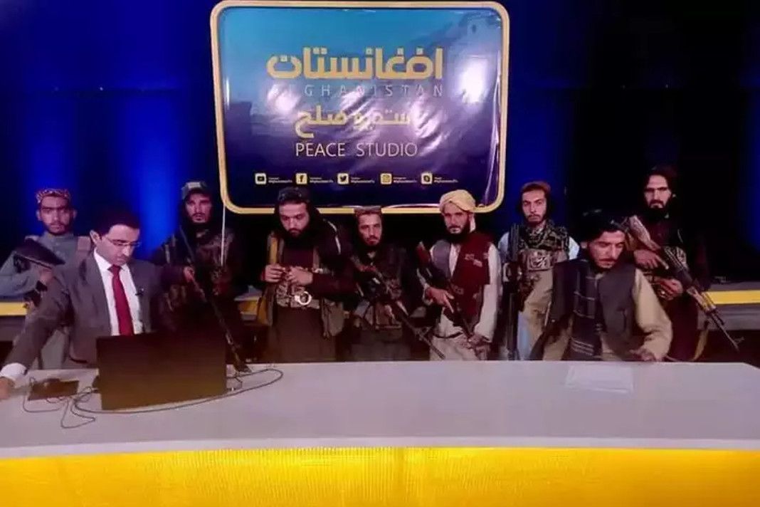 एक चौंकाने वाले घटनाक्रम में एक अफगान टीवी समाचार प्रस्तोता ने तालिबान के सशस्त्र सदस्यों के समक्ष सुर्खियों को पढ़ा। इस क्लिप को टीवी स्टूडियो द्वारा ऑनलाइन साझा किया गया था, जब आतंकवादियों ने इमारत पर धावा बोल दिया और समाचार एंकर से तालिबान की प्रशंसा करने की मांग की। 42 सेकंड की क्लिप में, जिसे तब से 10 लाख से अधिक बार देखा जा चुका है, समाचार एंकर आठ हथियारबंद लोगों से घिरे हुए हैं जो पढ़ते समय उनकी रक्षा करते हुए दिखाई देते हैं।